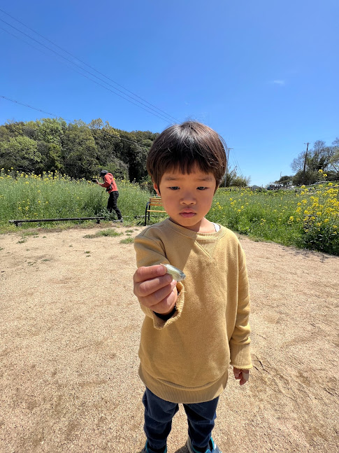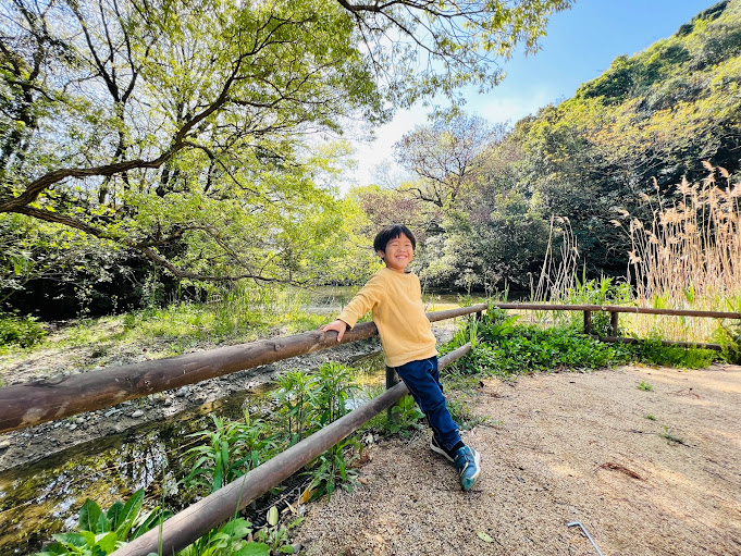 新緑が眩しいですね。息子もごきげんなご様子。